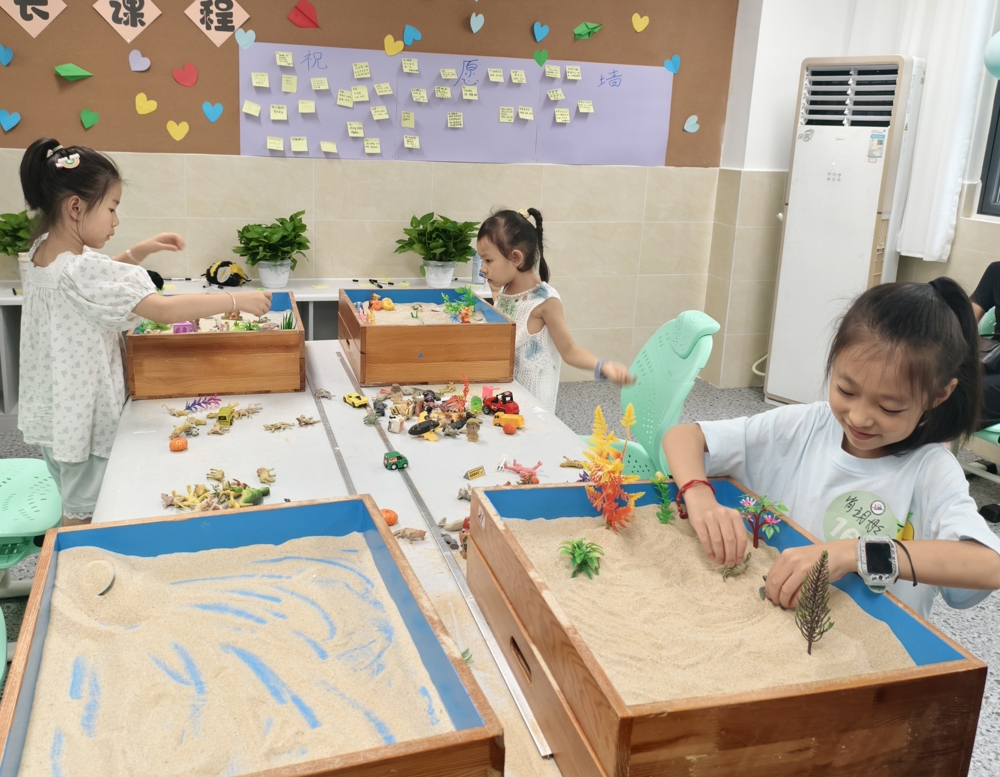 "智能体育"课堂上,孩子们在科技与运动中感受活力绽放;"快乐沙盘"课程里,小手堆砌出心中的世界,想象力在沙粒间自由流淌。课程不只是知识的传递,更是孩子天性的尊重与激发。我们相信:被爱包围的童年,才能长出自信的翅膀。