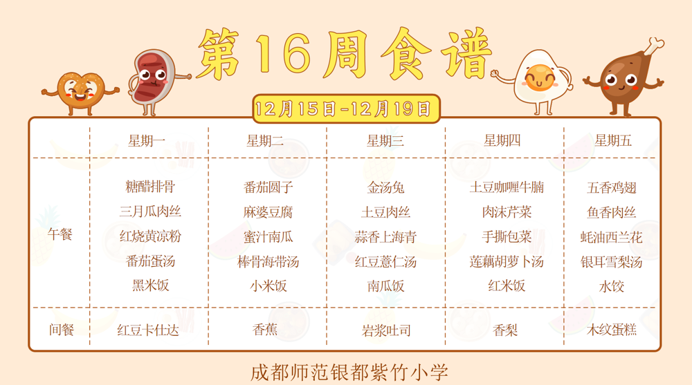 【紫竹“食”刻】叮咚~紫竹小学第16周食谱已送达!