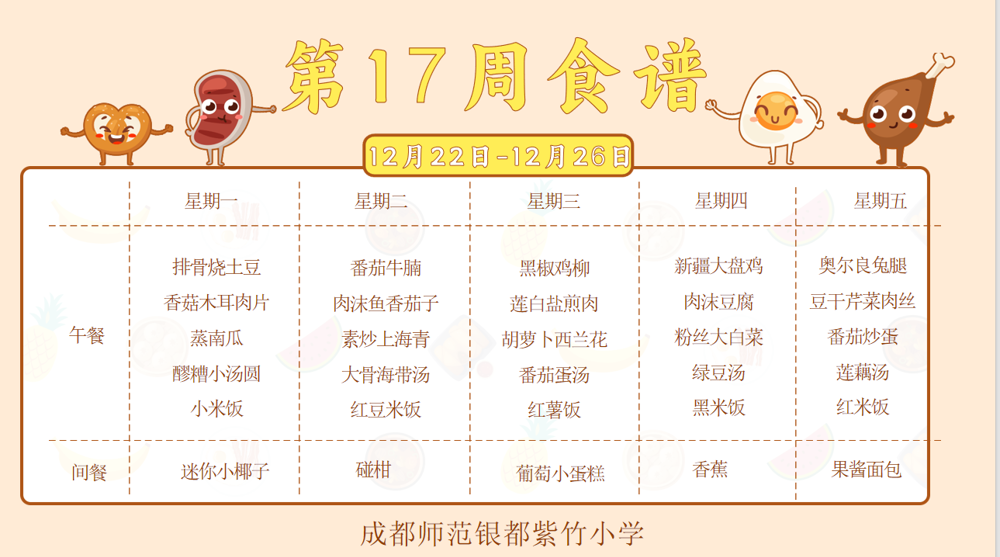 【紫竹“食”刻】叮咚~紫竹小学第17周食谱已送达!