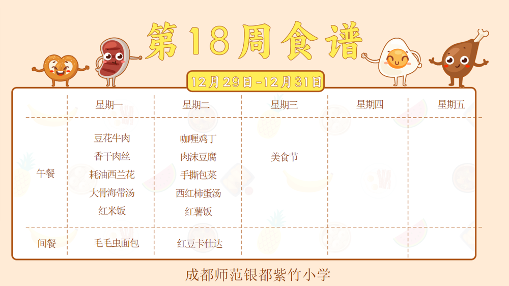 【紫竹“食”刻】叮咚~紫竹小学第18周食谱已送达!