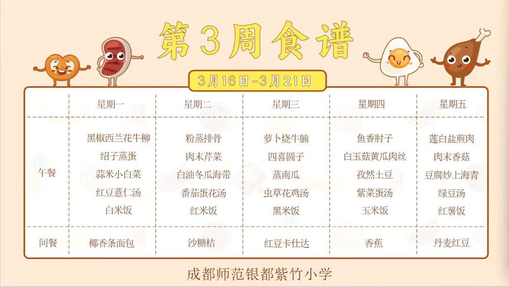 【紫竹“食”刻】叮咚~紫竹小学第3周食谱已送达!