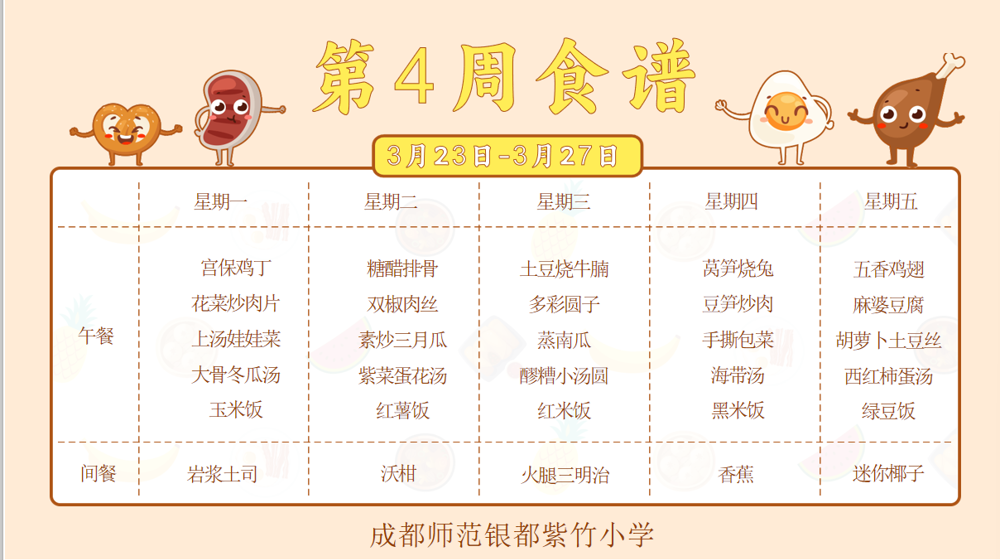 【紫竹“食”刻】叮咚~紫竹小学第4周食谱已送达!